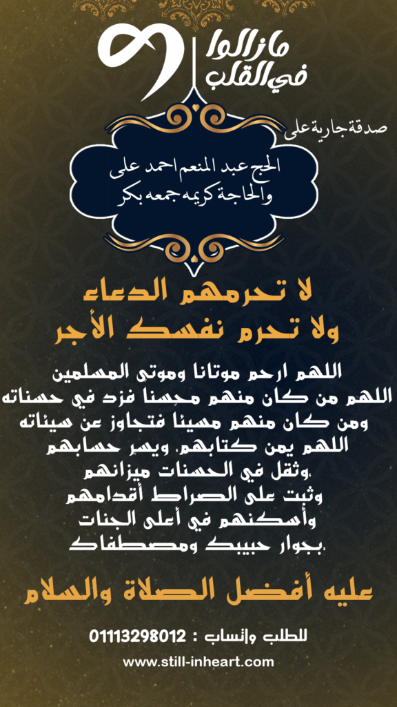 اللهم انقلهم من ضيق اللحود ومن مراتع الدود الى جناتك جنات الخلود لا اله الا انت يا حنان يا منان يا بديع السموات والأرض تغمد ( الحج عبد المنعم احمد على