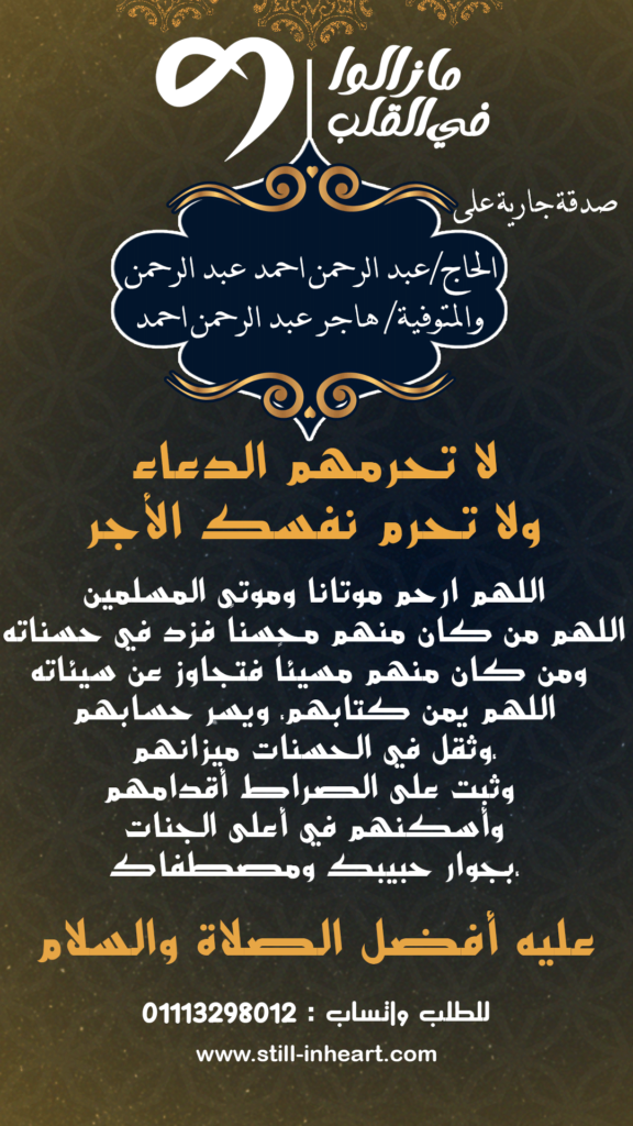 والمتوفية/ هاجر عبد الرحمن احمد عابد لتكون هذه الصفحة صدقة جارية لهم