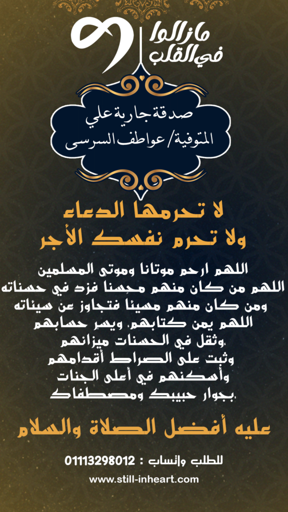 { وَمَا تُقَدِّمُوا لِأَنْفُسِكُمْ مِنْ خَيْر تَجِدُوهُ عِنْد اللَّه } نسألكم الدعاء للـ "المتوفية/ عواطف السرسى