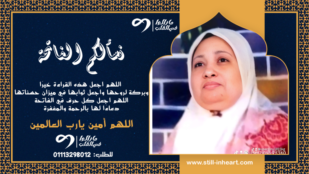 { وَمَا تُقَدِّمُوا لِأَنْفُسِكُمْ مِنْ خَيْر تَجِدُوهُ عِنْد اللَّه } نسألكم الدعاء للـ المتوفية/ هدي جلال عبد العظيم
