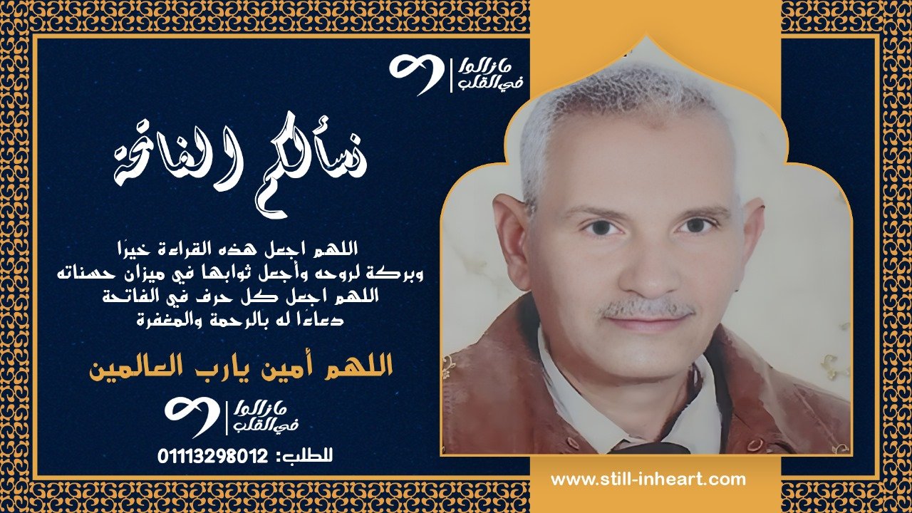 اللهم من احييته منا فأحييه على الإسلام . ومن توفيته منا فتوفاه على الإيمان . اللهم ارحم الحاج/ عبد الرحمن صابر محمد) رحمة واسعة وتغمده برحمتك