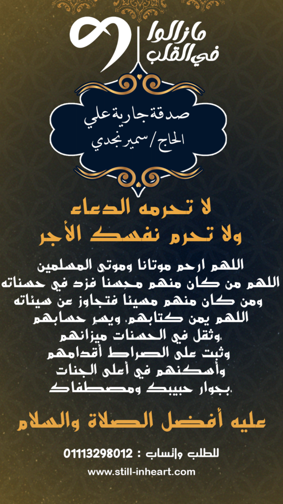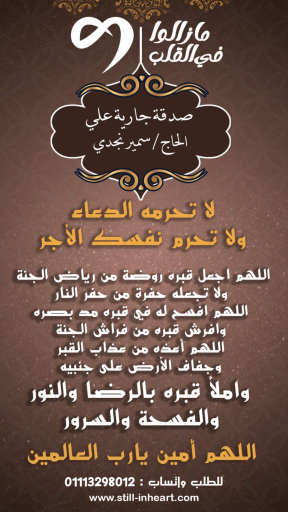 اللهم ان ( المرحوم/ سمير نجدي ) في ذمتك وحبل جوارك فقه من فتنة القبر وعذاب النار وانت اهل الوفاء والحق فاغفر له وارحمه انك انت الغفور الرحيم
