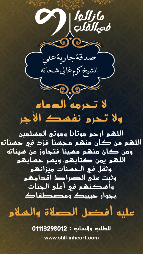 اللهم من احييته منا فأحييه على الإسلام . ومن توفيته منا فتوفاه على الإيمان . اللهم ارحم (الشيخ كرم غالي شحاته